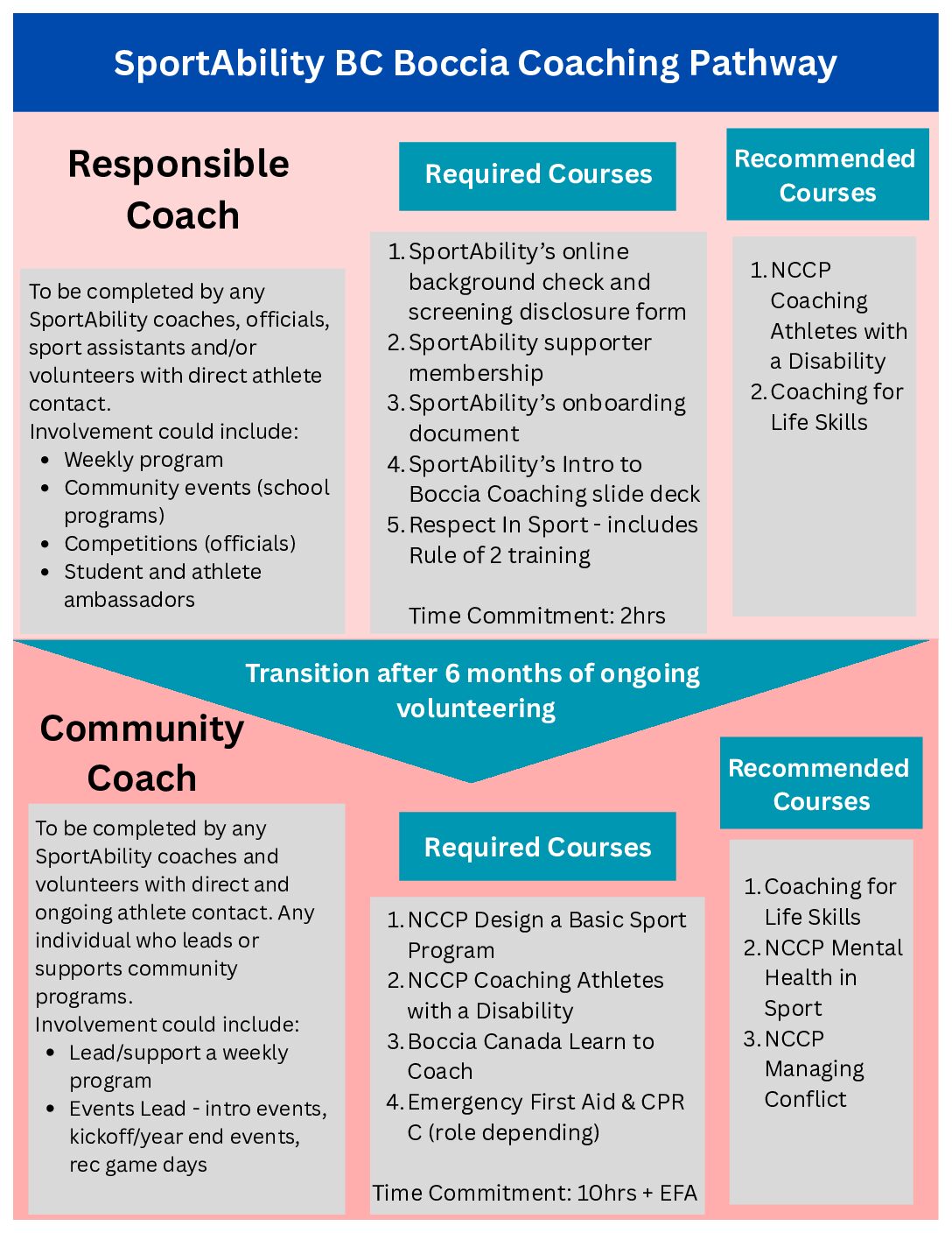 Welcome to SportAbility’s Coach Masterclass. The purpose of this program is to provide individuals seeking a coaching role with a progressive structure that can support building their confidence and proficiency to become a strong sport leader while implementing a safe sport environment in one or more of SportAbility’s identified sports (Boccia, Para Ice Hockey, and Power Soccer). We are currently running a pilot program of the Coach Masterclass for current SportAbility coaches and volunteers. Note that this process will also require undergoing SportAbility’s updated screening process for staff and volunteers. Financial support is also available for these groups within budget limits.